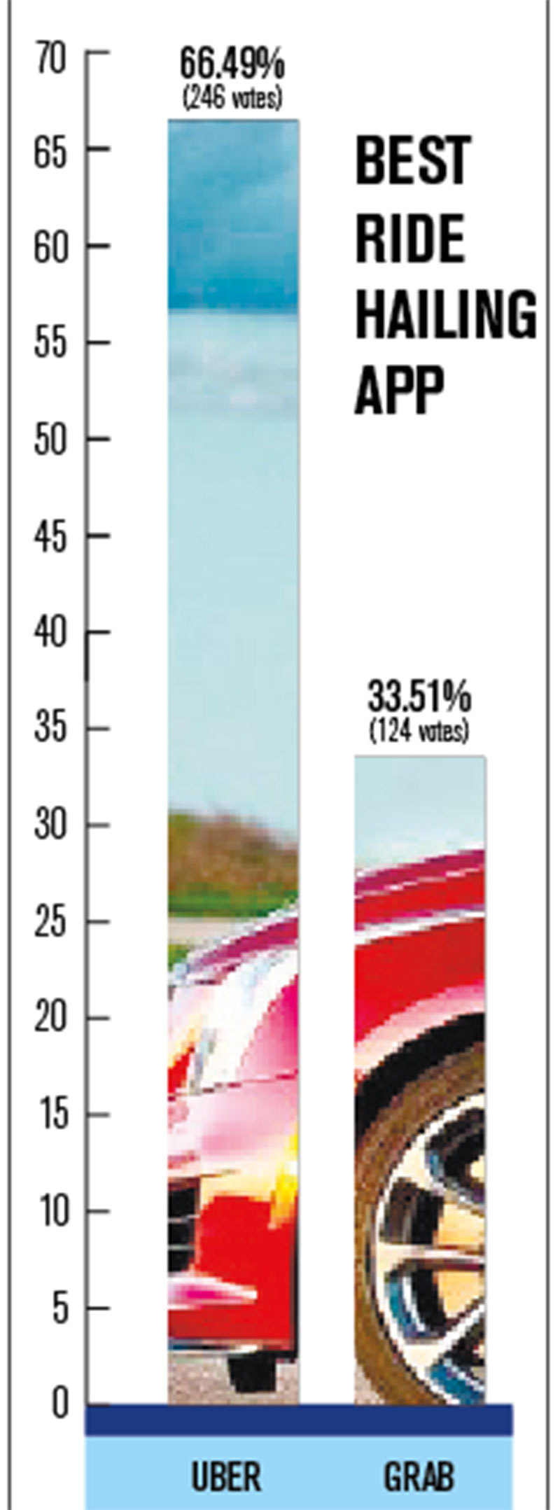 UBER. Uber, which celebrated its one-year presence in Cebu in December 2016, was voted as the best ride hailing app with 66.49 percent or 246 votes of the 370 who voted.