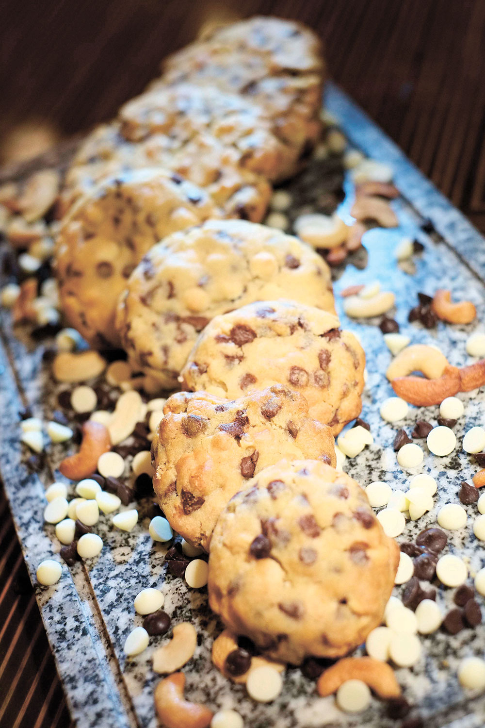 MALICIOUS COOKIES AT CAFÉ MARCO. Belgian dark and white chocolate chips peppering, nay, coating the topside of this buttery soft-crunch make its disregard for restraint obvious. There may be no cruel intent to sabotage the consumer waistline, but Café Marco’s innocuous-looking sweet little baked cake, one suspects, was designed for the insatiable, hence its name that suggests a delicious malevolence.